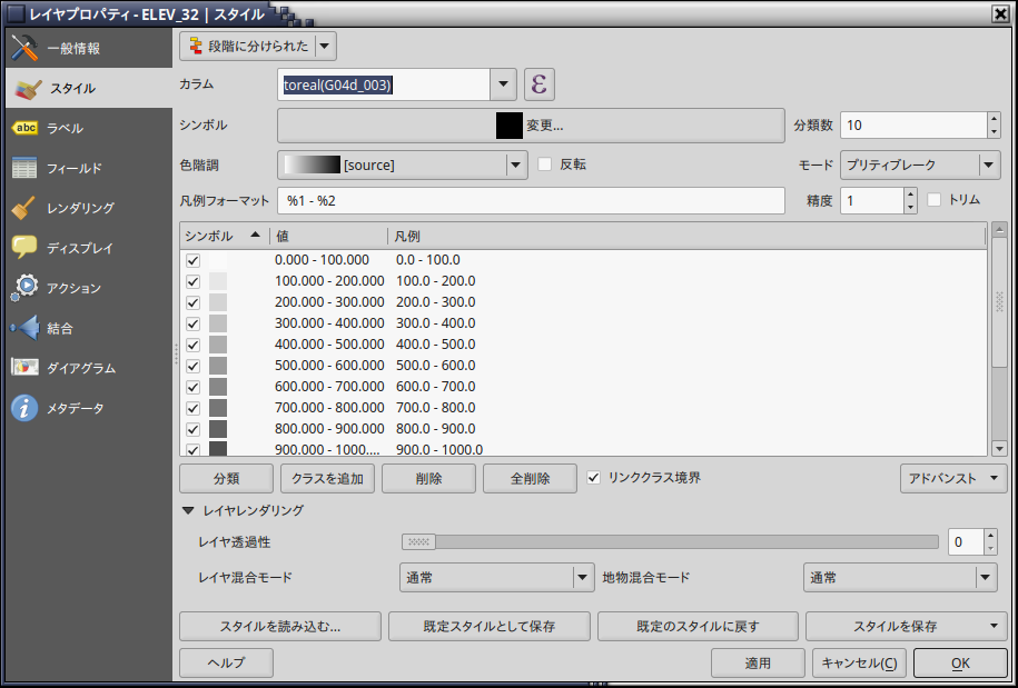 とした後「分類」をクリックすると、階調が設定されるので「OK」をクリックする。