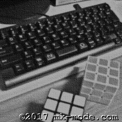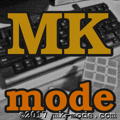 画像上部に “MK”, 下部に “mode” 当文字を縁取りで描画している。