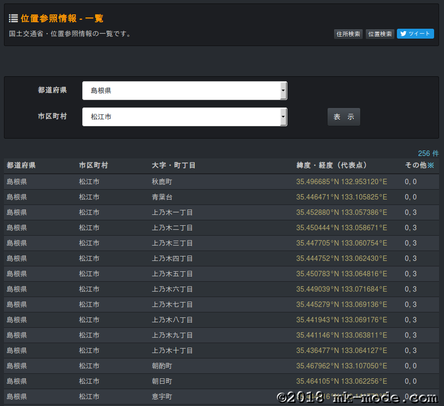 国土交通省・国土政策局提供の位置参照情報(大字・町丁目レベル)を一覧で確認できるページを自 Web サイト内に設置しました。