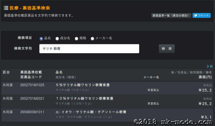 Ruby, Rails - 薬価基準一覧、薬価基準検索ページ!