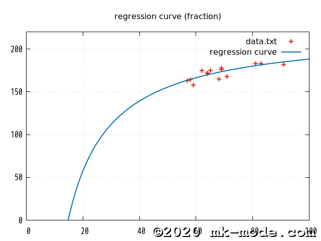 C++ で、数値からなる同サイズの配列2つを説明変数・目的変数とみなして単回帰曲線(分数(逆数)回帰モデル)を計算する方法についての記録です。