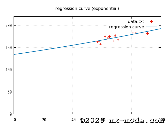 C++ で、数値からなる同サイズの配列2つを説明変数・目的変数とみなして単回帰曲線(指数(ab指数)回帰モデル)を計算する方法についての記録です。