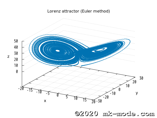 $ ./lorenz_attractor_euler 10 28 2.66666667 > data.txt